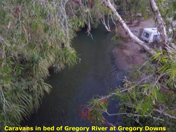 Some caravans were driven down into the bed of the Gregory River at Gregory Downs.