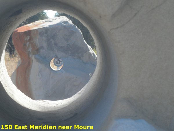 This sculpture shows where the 150 degree meridian is and is near Moura.