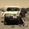 Victor recovering his esky that had fallen out then got ran over by anther car on Lake Popel